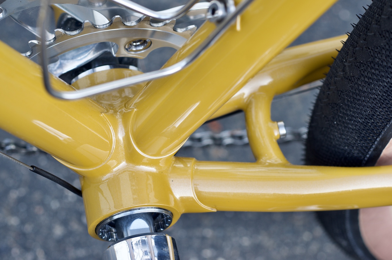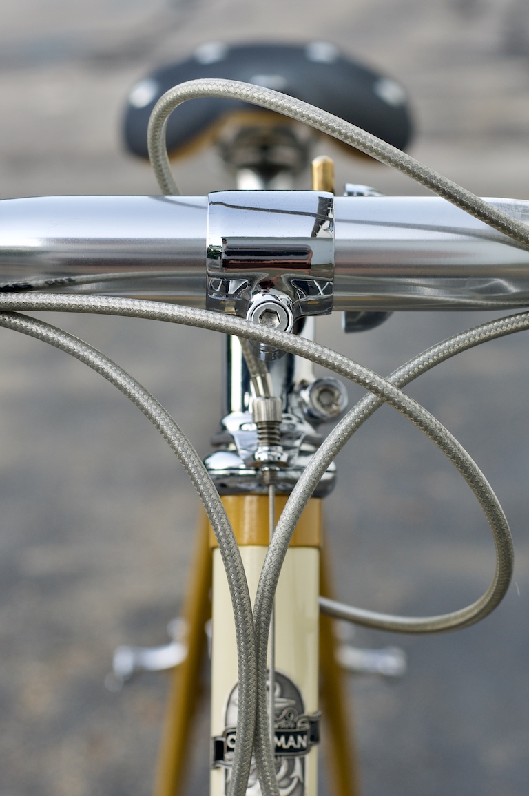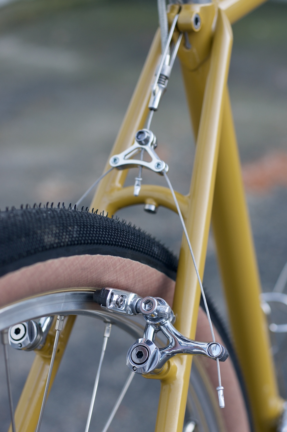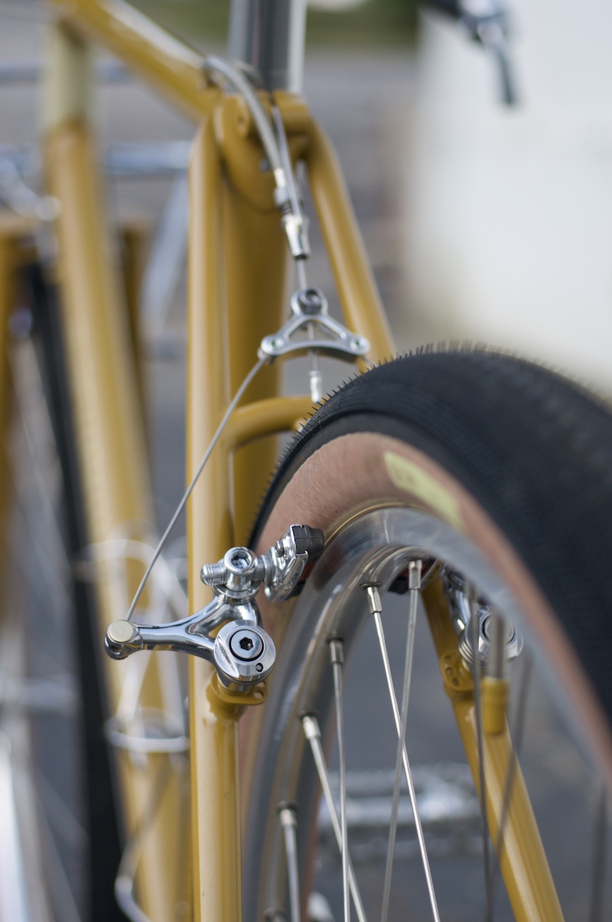There are no fenders on this one which is a change of pace for me. I did add the braze-ons and allowed clearance for them just in case she changes her mind one day. Little to no branding is visible on this bike which makes it sort of a sleeper. But once you get up close and see the details in the brakes, the machining on the stem, the smooth fillets on the rack, or the lining on the head tube, it wakes you right up.