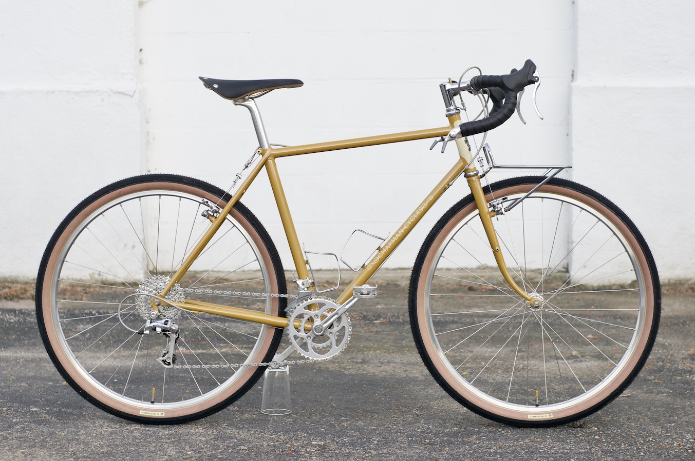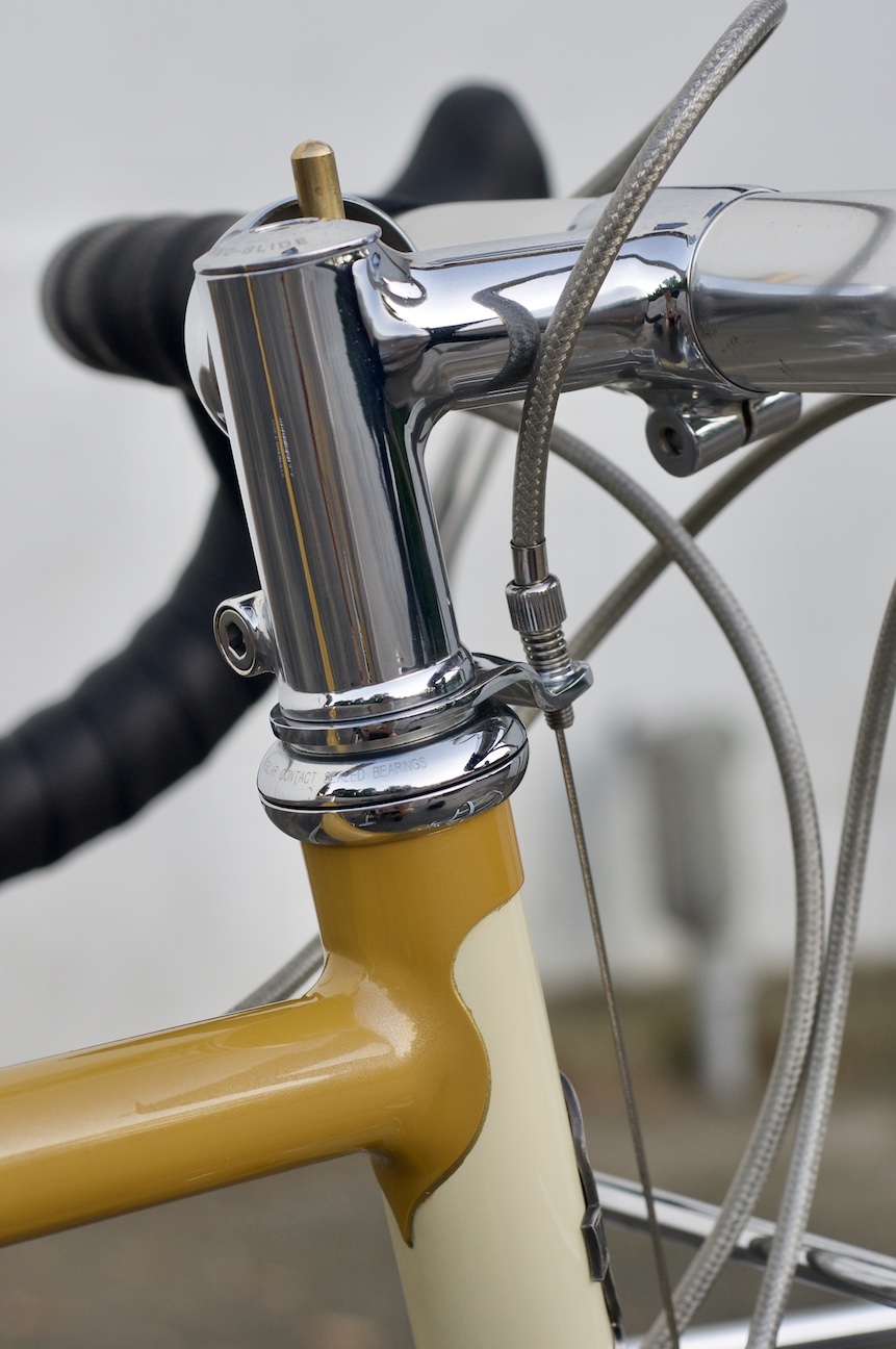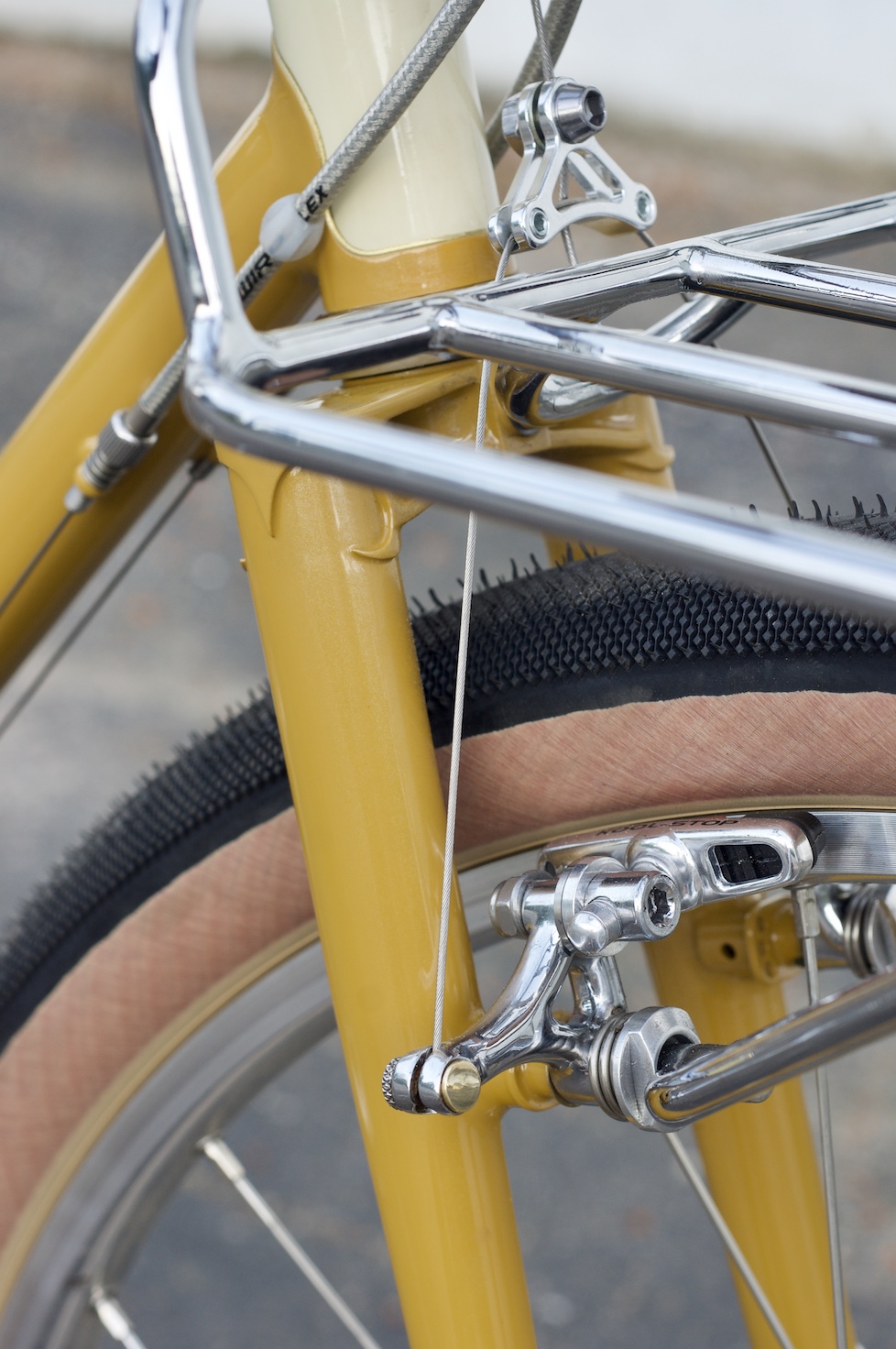 There are no fenders on this one which is a change of pace for me. I did add the braze-ons and allowed clearance for them just in case she changes her mind one day. Little to no branding is visible on this bike which makes it sort of a sleeper. But once you get up close and see the details in the brakes, the machining on the stem, the smooth fillets on the rack, or the lining on the head tube, it wakes you right up.