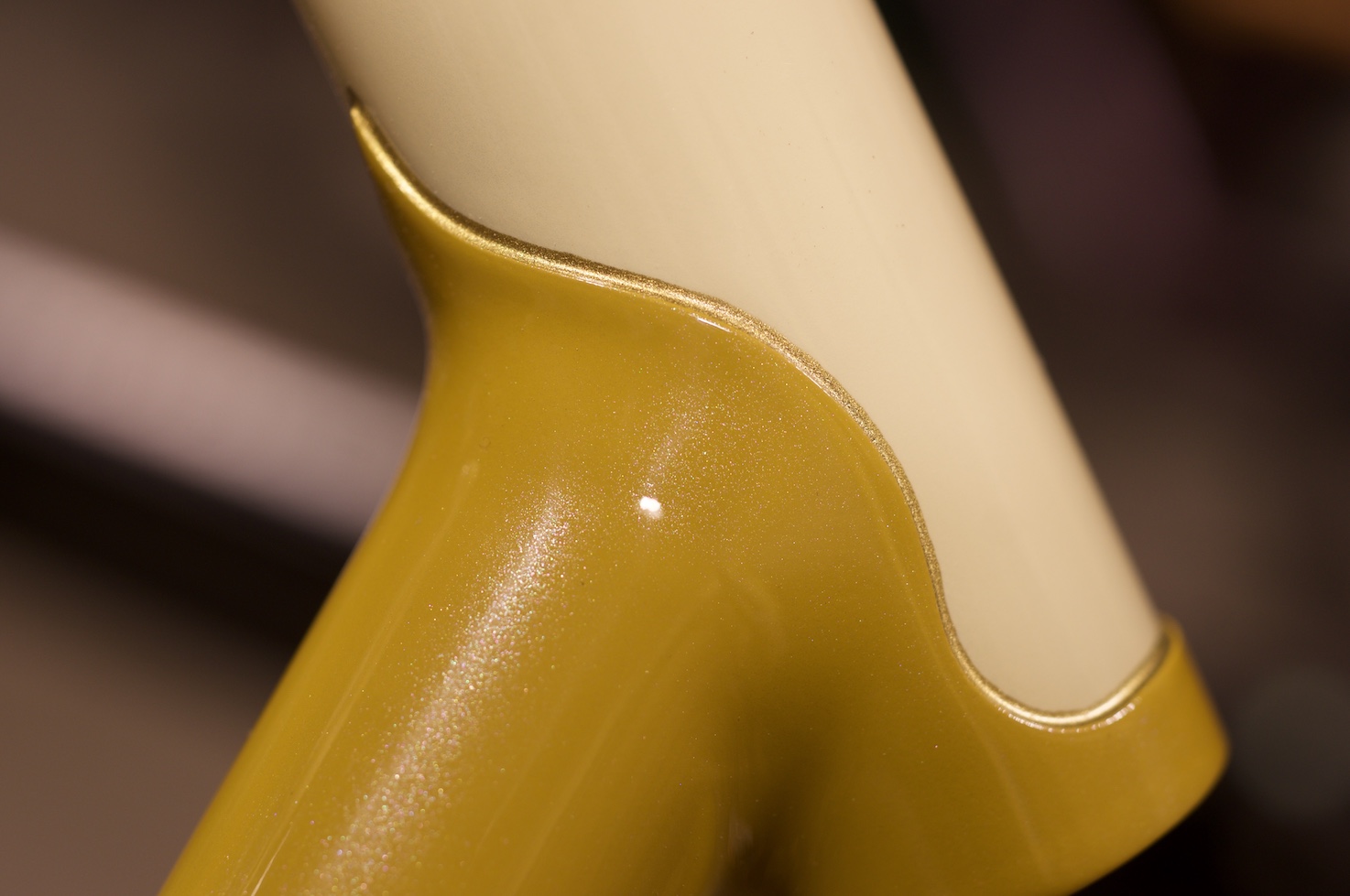 The mustard color is exactly the type of color I envisioned myself painting when I started 10 years ago. I was obsessed with car colors of the 70s which for some is an acquired taste. I’ve since expanded my palette to pretty much anything but when colors like this pop up, it warms my heart. It nicely stands in contrast with the chrome of the handmade components.